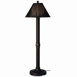 Coronado modern outdoor floor lamp. Simplistic contemporary design with completely weatherproof structure. Sunbrella shades are available in 24 colors. Lamps feature all weather resin construction with heavy bases. Two level dimming switch. Weather proof 16 feet cord and plug. Unbreakable polycarbonate light bulb enclosure keeps light bulbs weather proof. Uses 100 watt standard bulb. Floor Lamp is 58 inches tall. Shade is 20 ½ inches by 10 inches in diameter. Bronze color body and base.