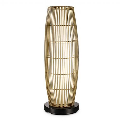 PatioGlo LED Outdoor Floor Lamp White with Natural Resin Bamboo Cover. 6 super bright white LEDs provide equivalent light output of a 70 watt incandescent bulb while only using 6 watts. Body of the PatioGlo lamp is molded of special UV protected high density frost polyethylene mounted to a weighted resin base. The base includes an energy saving low voltage LED light source designed to provide years of carefree illumination. Accented with a natural resin bamboo cover. Completely weatherproof with nothing to rust or corrode. Great for seaside environments. Includes remote control with on/off and dimming functions.