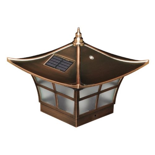 Attractively designed in a Japanese garden style, the 4x4 Copper Ambience solar post cap provides a warm yellow light giving the effect of a real candle. Dependable peformance with a unique style.
