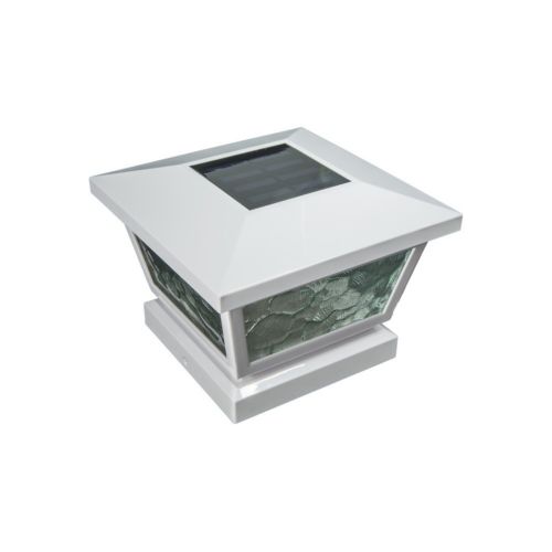 White the novel Fairmont Solar Post Cap can be used for post or wall mount. It is complimented using real pebbled glass and will fit over a 5x5, 4x4 or 3.5x3.5" post.