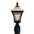 This decorative outdoor light fixture incorporates several different concepts to create an individual style. Each fixture has an Alabaster-like glass lid, leaded stained glass panels and sculptured cast aluminum arms and cage. These fixtures emit a warm and attractive glow that provides ample light for any entrance, porch or deck.