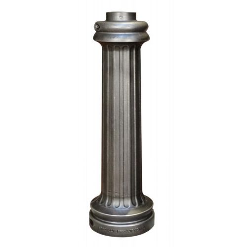Decorative two piece wrap around base. Can be used with 3" O/D smooth or fluted light poles. 26" H × 8" Diameter Base. Made of Cast Aluminum with a durable powder coated finish.