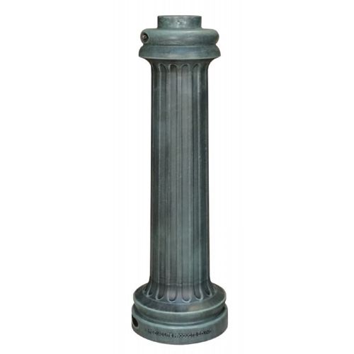 Decorative two piece wrap around base. Can be used with 3" O/D smooth or fluted light poles. 26" H × 8" Diameter Base. Made of Cast Aluminum with a durable powder coated finish.