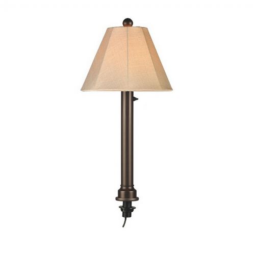 Outdoor Wicker Umbrella Table Lamp Bronze. Add fashionable styling and light to your outdoor dining table. Features all resin construction and fits 1 7/16" diameter or larger umbrella table hole. Accommodates table thicknesses up to 3". Unbreakable polycarbonate waterproof light bulb enclosure allows the use of a standard 60 watt bulb. Complete with on/off dimmer switch and 20 ft. weatherproof cord and plug.
