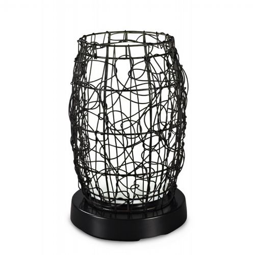 PatioGlo LED Outdoor Table Lamp White with Walnut Wicker Cover. 3 super bright white LEDs provide equivalent light output of a 40 watt incandescent bulb while only using 3 watts. Body of the PatioGlo lamp is molded of special UV protected high density frost polyethylene mounted to a weighted resin base. The base includes an energy saving low voltage LED light source designed to provide years of carefree illumination. Accented with a walnut random weave resin wicker cover. Completely weatherproof with nothing to rust or corrode. Great for seaside environments. Includes remote control with on/off and dimming functions.