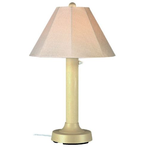 Seaside Outdoor Table Lamp Bisque. Carefree durability while adding a touch of style to any outdoor living area. Seaside Table Lamp 20614 features a 3" bisque body, heavy weighted base and antique beige linen Sunbrella shade fabric. 16 ft. weatherproof cord and plug. Two level dimming switch.