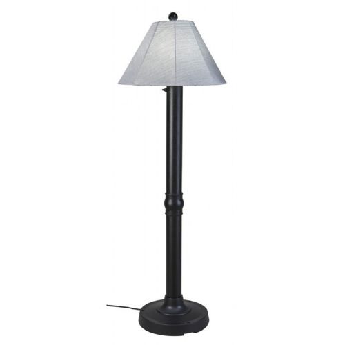Carefree durability while adding a touch of style to any outdoor living area. Seaside Table Lamp 67610 features a 3" black body, heavy weighted base and canvas granite Sunbrella shade fabric. 16 ft. weatherproof cord and plug. Two level dimming switch.