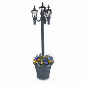 Crater White Sconce garden torches feature superior quality in aluminum die cast construction. Lights after rain or snow. Sconce oil torches are avilable in 6 elegant colors. Extra fuel capacity. Fiberglass wicks only burn fuel. No wood to rot away. No metal container inserts. Features year round outdoor beauty. 23" tall. Set of 2 sconce torches. Mounting Plate 10" × 3 ½".