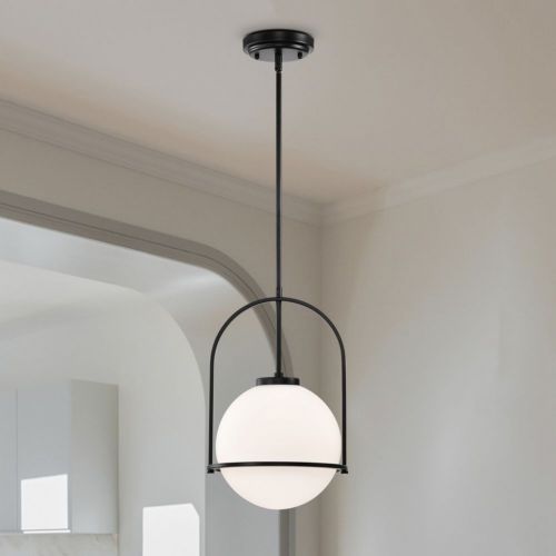 All the world's a stage when you buy this globe pendant streaming light. Try hanging this 1-light metal pendant for an instant style update. You'll love its opaque glass globe shade and optional metal finishes, plus the fact that you can adjust the height.