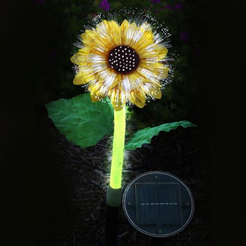 Solar sunflower outdoor garden lamp. Solar night flowers are beautiful, nature-inspired artwork that harness the energy of the sun to light up your night. Utilizes a moveable solar panel, these solar night flowers don't have to be in direct sunlight to function.