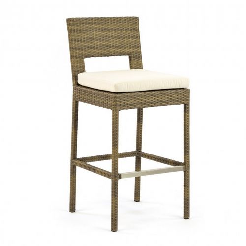 10Tierra wicker bar chair. Contemporary patio furniture design. Made from all weather outdoor wicker over strong powder coated aluminum frame. Maintenance free. Can be washed down with water. Totally outdoor resistant. Cushions are made from 100% Sunbrella fabric and durable for outdoor use. Seat and back cushions included. Wicker available in Moccachino only. Sunbrella fabric is available in multiple colors and patterns.