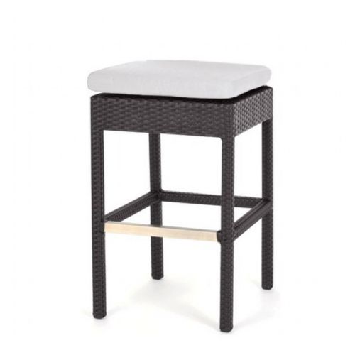 Dijon outdoor wicker bar stool with cushion. Contemporary and modern patio furniture design. Made from all weather outdoor wicker over strong extruded powder coated aluminum frame. Maintenance free. Can be washed down with water. Totally outdoor resistant. Cushions are made from 100% Sunbrella fabric and durable for outdoor use. Seat cushions included. Wicker available in Espresso only. Cushions are 2 inch thick.