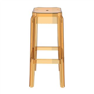 Fox polycarbonate outdoor barstool. Modern contemporary design. Can be used both indoors and outdoors. Scratch resistant. Commercial grade plastic polycarbonate resin. Strong legs and structure. Stackable. Very elegant. Color: Transparent. Certified for strict European standards by CATAS Italian research institute and test laboratory.