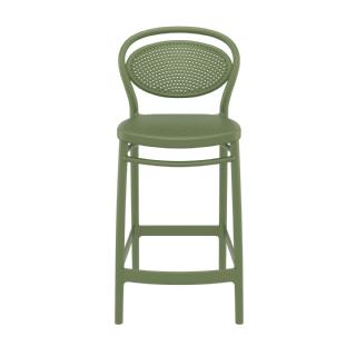 Taupe outdoor counter high chair. Classic design. Made from polypropylene resin with gas injection molded legs. Suitable for indoors and outdoors. Perfect for heavy use areas. Suitable for restaurants, cafes and hotels.