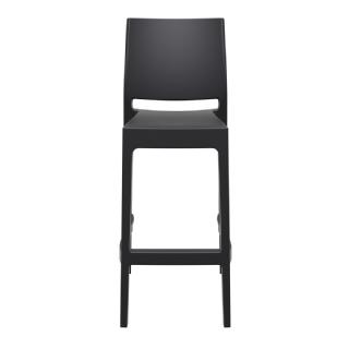 White Maya indoor-outdoor barstool. Made from commercial grade resin with gas injection molded legs. So elegant that it is suitable for indoors, so durable that it is used outdoors. Perfect for heavy use areas. Great for outdoor spaces or high traffic indoor spaces. Preferred by yogurt shops, outdoor cafes, ice cream shops, outdoor restaurants and hotels. Stools are stackable, easy cleaning and UV resistant. Certified for strict European standards by CATAS Italian research institute and test laboratory.