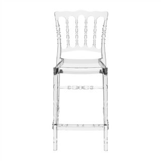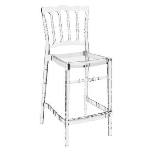 Opera polycarbonate wedding style counter height stool. Classic design. Made from commercial grade polycarbonate. So elegant that it is suitable for indoors, so durable that it is used outdoors. Great for outdoor spaces. Stackable, easy cleaning and UV resistant. Made for outdoor use but can be used indoors. Preferred by weddings, parties, birthdays. Certified for strict European standards by CATAS Italian research institute and test laboratory.