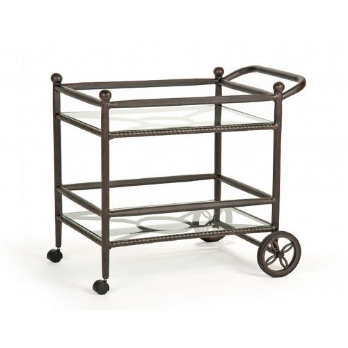 Origin cast and tubular aluminum patio tea cart. Complements all dining and deepseating sets. Tea cart comes with two pieces of tempered glass 5mm thick, sturdy shelves and wheels in the for ease of movement. Strong cast and tubular frames. All corners are welded 360° for maximum strength and powder coated so it won't chip, fade, or scratch. Perfect for outdoors.
