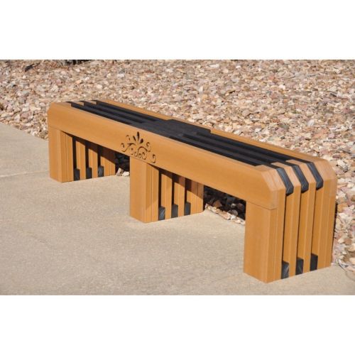 Gateway bench by Jayhawk Plastics is available in 4' or 6' lengths. It is made with 2"x 6" sized recycled plastic slats. It is the sturdiest backless bench yet! It sits up to 3 people at a length of 6 feet. It comes in2 or 3 bases. It also has a state of the art design that bench comes with or without an engraved design on the front of the bench. It is available in cedar. There is not any assembly required.
