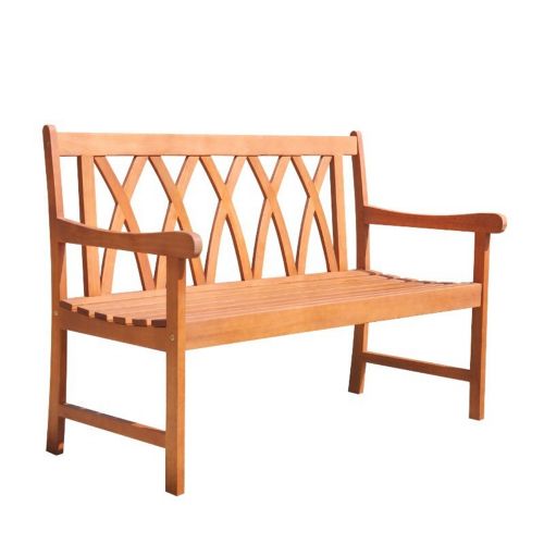 Made from 100% Eucalyptus - a very durable Hardwood, this bench can stand up to all kinds of changes in the weather. The cores of the Eucalyptus is very dense; thereby it quickly repels water, and its natural oil combats and repels wood eating insects.