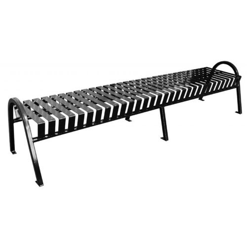 Backless bench with decorative curved slats and arms that integrates into any environment. Made of heavy gauge galvanneal steel with a TGIC powder coat finish for lasting durability. Comes standard with an anchor kit for securing to the ground.