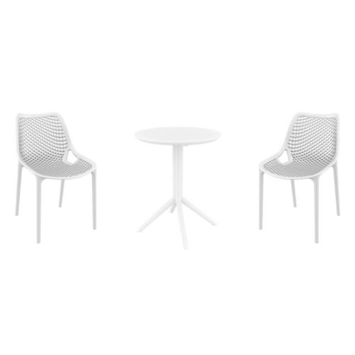 Transform your small outdoor area into a stylish space with Air chairs and Sky 24" round folding table 3 piece bistro set in white. Made from durable polypropylene resin, this bistro set is perfect for balconies, terraces, decks, patios, cafes and restaurants. Air chairs feature a sleek and contemporary design that adds a touch of sophistication to any space. Sky 24" round folding table provides plenty of room for two people to sit and enjoy a meal or drink together.