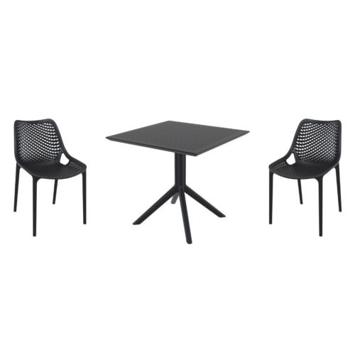 Introducing the Air chairs and Sky 31" square table 3 piece dining set in Black - the perfect addition to any small outdoor living area! Crafted from high-quality polypropylene resin, this set is durable and weather-resistant, ensuring it will last you for years to come. Air chairs feature a sleek and modern design, with a comfortable seat and backrest. Sky 31" square table providing ample space for two people to enjoy a meal or drink together.