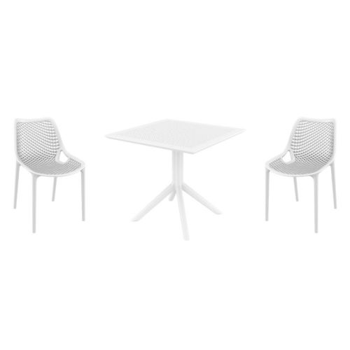Introducing the Air chairs and Sky 31" square table 3 piece dining set in White - the perfect addition to any small outdoor living area! Crafted from high-quality polypropylene resin, this set is durable and weather-resistant, ensuring it will last you for years to come. Air chairs feature a sleek and modern design, with a comfortable seat and backrest. Sky 31" square table providing ample space for two people to enjoy a meal or drink together.