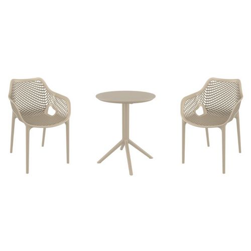 Transform your small outdoor area into a stylish space with Air XL arm chairs and Sky 24" round folding table 3 piece bistro set in taupe. Made from durable polypropylene resin, this bistro set is perfect for balconies, terraces, decks, patios, cafes and restaurants. Air XL arm chairs feature a sleek and contemporary design that adds a touch of sophistication to any space. Sky 24" round folding table provides plenty of room for two people to sit and enjoy a meal or drink together.