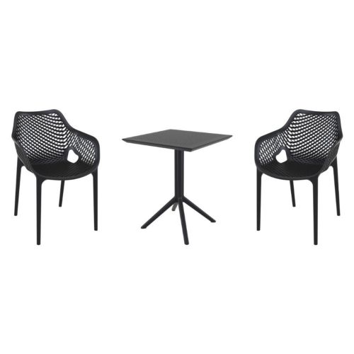 Transform your small outdoor area into a stylish space with Air XL arm chairs and Sky 24" square folding table 3 piece bistro set in black. Made from durable polypropylene resin, this bistro set is perfect for balconies, terraces, decks, patios, cafes and restaurants. Air XL arm chairs feature a sleek and contemporary design that adds a touch of sophistication to any space. Sky 24" square folding table provides plenty of room for two people to sit and enjoy a meal or drink together.