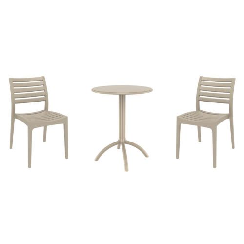 Transform your small outdoor area into a stylish space with Ares chairs and Octopus 24" round table 3 piece bistro set in taupe. Made from durable polypropylene resin, this bistro set is perfect for balconies, terraces, decks, patios, cafes and restaurants. Ares chairs feature a sleek and contemporary design that adds a touch of sophistication to any space. Octopus 24" round table provides plenty of room for two people to sit and enjoy a meal or drink together.