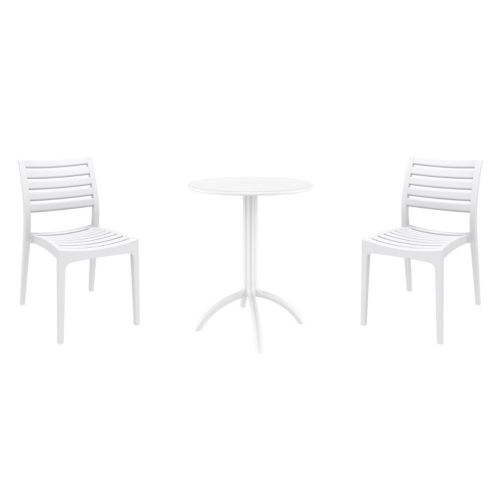 Transform your small outdoor area into a stylish space with Ares chairs and Octopus 24" round table 3 piece bistro set in white. Made from durable polypropylene resin, this bistro set is perfect for balconies, terraces, decks, patios, cafes and restaurants. Ares chairs feature a sleek and contemporary design that adds a touch of sophistication to any space. Octopus 24" round table provides plenty of room for two people to sit and enjoy a meal or drink together.