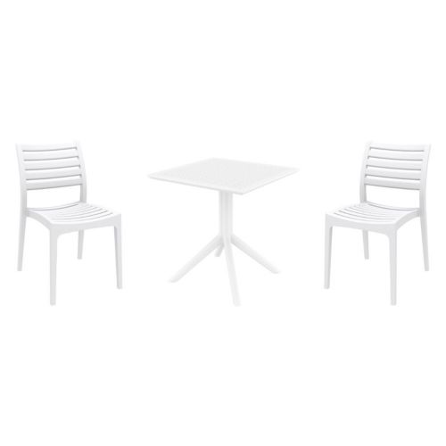Introducing the Ares chairs and Sky 27" square table 3 piece dining set in White - the perfect addition to any small outdoor living area! Crafted from high-quality polypropylene resin, this set is durable and weather-resistant, ensuring it will last you for years to come. Ares chairs feature a sleek and modern design, with a comfortable seat and backrest. Sky 27" square table providing ample space for two people to enjoy a meal or drink together.