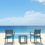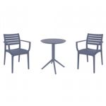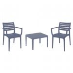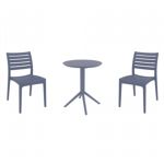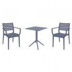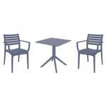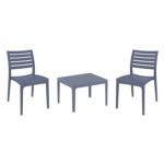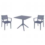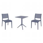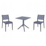 Introducing the Ares chairs and Sky 31" square table 3 piece dining set in Dark Gray - the perfect addition to any small outdoor living area! Crafted from high-quality polypropylene resin, this set is durable and weather-resistant, ensuring it will last you for years to come. Ares chairs feature a sleek and modern design, with a comfortable seat and backrest. Sky 31" square table providing ample space for two people to enjoy a meal or drink together.