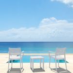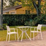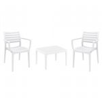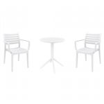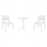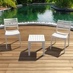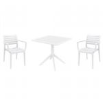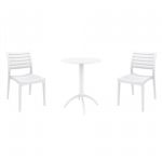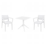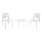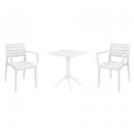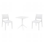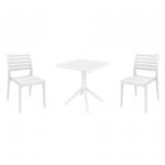 Introducing the Ares chairs and Sky 31" square table 3 piece dining set in White - the perfect addition to any small outdoor living area! Crafted from high-quality polypropylene resin, this set is durable and weather-resistant, ensuring it will last you for years to come. Ares chairs feature a sleek and modern design, with a comfortable seat and backrest. Sky 31" square table providing ample space for two people to enjoy a meal or drink together.
