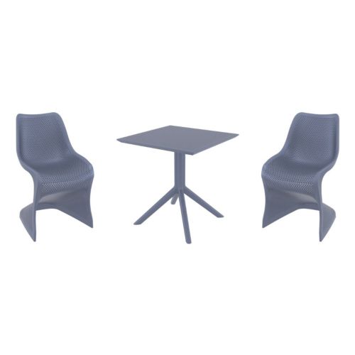 Introducing the Bloom chairs and Sky 27" square table 3 piece dining set in Dark Gray - the perfect addition to any small outdoor living area! Crafted from high-quality polypropylene resin, this set is durable and weather-resistant, ensuring it will last you for years to come. Bloom chairs feature a sleek and modern design, with a comfortable seat and backrest. Sky 27" square table providing ample space for two people to enjoy a meal or drink together.