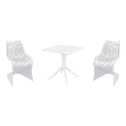 Introducing the Bloom chairs and Sky 27" square table 3 piece dining set in White - the perfect addition to any small outdoor living area! Crafted from high-quality polypropylene resin, this set is durable and weather-resistant, ensuring it will last you for years to come. Bloom chairs feature a sleek and modern design, with a comfortable seat and backrest. Sky 27" square table providing ample space for two people to enjoy a meal or drink together.