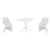 Outdoor dining set with two chairs and one square table in black. Made for commercial durability. Chairs are stackable. UV treated. Withstands outdoor temperatures summer and winter. Elegant and modern table has nonskid pads. Dining set is perfect for heavy use areas. Set items are 100% resistant to outdoors. Resin is virtually maintenance free. Table requires easy assembly.