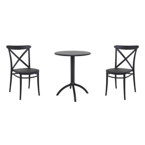 Transform your small outdoor area into a stylish space with Cross chairs and Octopus 24" round table 3 piece bistro set in black. Made from durable polypropylene resin, this bistro set is perfect for balconies, terraces, decks, patios, cafes and restaurants. Cross chairs feature a sleek and contemporary design that adds a touch of sophistication to any space. Octopus 24" round table provides plenty of room for two people to sit and enjoy a meal or drink together.