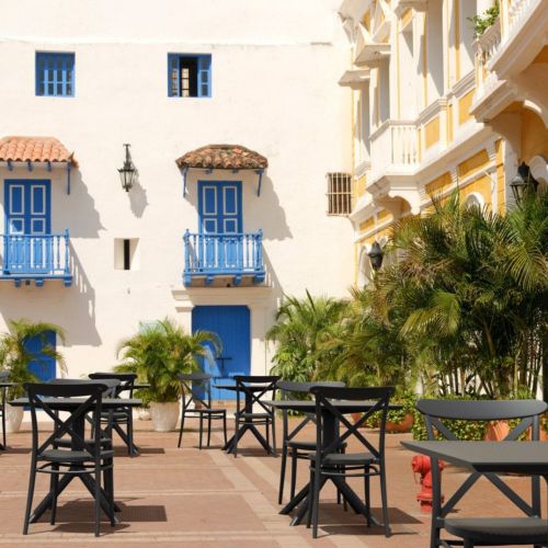 Introducing the Cross chairs and Sky 31" square table 3 piece dining set in Black - the perfect addition to any small outdoor living area! Crafted from high-quality polypropylene resin, this set is durable and weather-resistant, ensuring it will last you for years to come. Cross chairs feature a sleek and modern design, with a comfortable seat and backrest. Sky 31" square table providing ample space for two people to enjoy a meal or drink together.