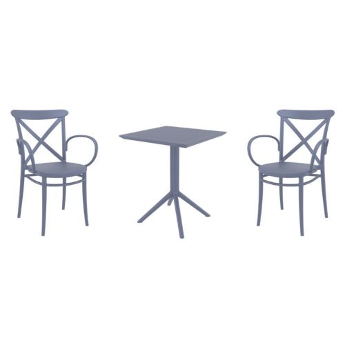 Transform your small outdoor area into a stylish space with Cross XL arm chairs and Sky 24" square folding table 3 piece bistro set in dark gray. Made from durable polypropylene resin, this bistro set is perfect for balconies, terraces, decks, patios, cafes and restaurants. Cross XL arm chairs feature a sleek and contemporary design that adds a touch of sophistication to any space. Sky 24" square folding table provides plenty of room for two people to sit and enjoy a meal or drink together.