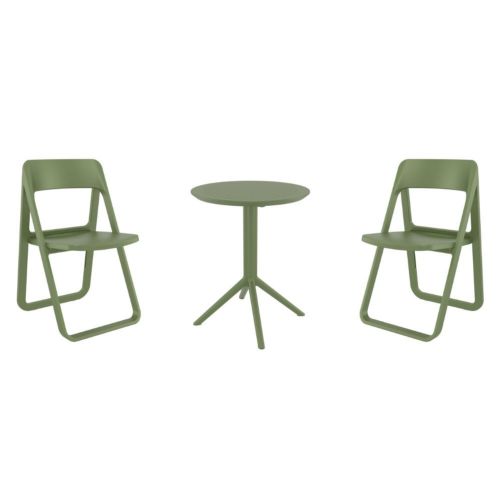 Transform your small outdoor area into a stylish space with Dream folding chairs and Sky 24" round folding table 3 piece bistro set in olive green. Made from durable polypropylene resin, this bistro set is perfect for balconies, terraces, decks, patios, cafes and restaurants. Dream folding chairs feature a sleek and contemporary design that adds a touch of sophistication to any space. Sky 24" round folding table provides plenty of room for two people to sit and enjoy a meal or drink together.