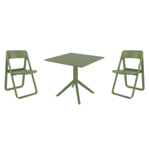 Introducing the Dream folding chairs and Sky 31" square table 3 piece dining set in Olive Green - the perfect addition to any small outdoor living area! Crafted from high-quality polypropylene resin, this set is durable and weather-resistant, ensuring it will last you for years to come. Dream folding chairs feature a sleek and modern design, with a comfortable seat and backrest. Sky 31" square table providing ample space for two people to enjoy a meal or drink together.
