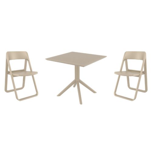 Introducing the Dream folding chairs and Sky 31" square table 3 piece dining set in Taupe - the perfect addition to any small outdoor living area! Crafted from high-quality polypropylene resin, this set is durable and weather-resistant, ensuring it will last you for years to come. Dream folding chairs feature a sleek and modern design, with a comfortable seat and backrest. Sky 31" square table providing ample space for two people to enjoy a meal or drink together.