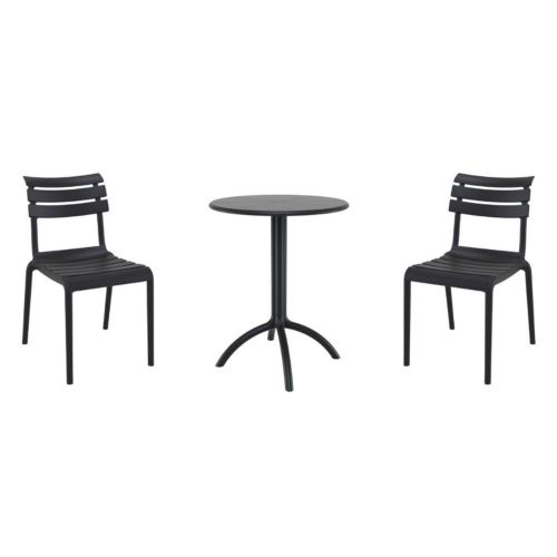 Transform your small outdoor area into a stylish space with Helen chairs and Octopus 24" round table 3 piece bistro set in black. Made from durable polypropylene resin, this bistro set is perfect for balconies, terraces, decks, patios, cafes and restaurants. Helen chairs feature a sleek and contemporary design that adds a touch of sophistication to any space. Octopus 24" round table provides plenty of room for two people to sit and enjoy a meal or drink together.
