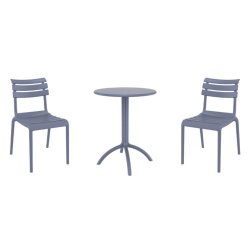 Transform your small outdoor area into a stylish space with Helen chairs and Octopus 24" round table 3 piece bistro set in dark gray. Made from durable polypropylene resin, this bistro set is perfect for balconies, terraces, decks, patios, cafes and restaurants. Helen chairs feature a sleek and contemporary design that adds a touch of sophistication to any space. Octopus 24" round table provides plenty of room for two people to sit and enjoy a meal or drink together.