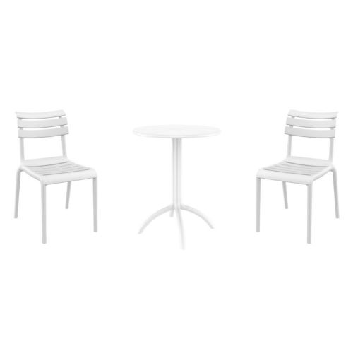 Transform your small outdoor area into a stylish space with Helen chairs and Octopus 24" round table 3 piece bistro set in white. Made from durable polypropylene resin, this bistro set is perfect for balconies, terraces, decks, patios, cafes and restaurants. Helen chairs feature a sleek and contemporary design that adds a touch of sophistication to any space. Octopus 24" round table provides plenty of room for two people to sit and enjoy a meal or drink together.