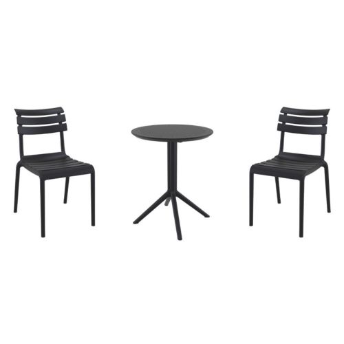 Transform your small outdoor area into a stylish space with Helen chairs and Sky 24" round folding table 3 piece bistro set in black. Made from durable polypropylene resin, this bistro set is perfect for balconies, terraces, decks, patios, cafes and restaurants. Helen chairs feature a sleek and contemporary design that adds a touch of sophistication to any space. Sky 24" round folding table provides plenty of room for two people to sit and enjoy a meal or drink together.