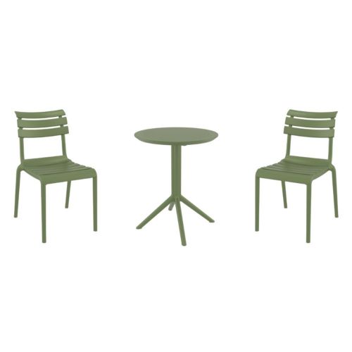 Transform your small outdoor area into a stylish space with Helen chairs and Sky 24" round folding table 3 piece bistro set in olive green. Made from durable polypropylene resin, this bistro set is perfect for balconies, terraces, decks, patios, cafes and restaurants. Helen chairs feature a sleek and contemporary design that adds a touch of sophistication to any space. Sky 24" round folding table provides plenty of room for two people to sit and enjoy a meal or drink together.