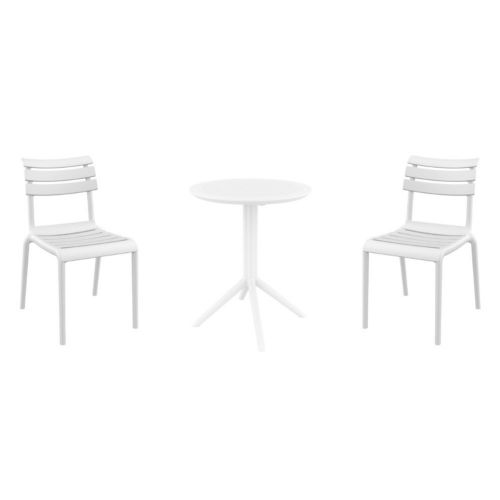 Transform your small outdoor area into a stylish space with Helen chairs and Sky 24" round folding table 3 piece bistro set in white. Made from durable polypropylene resin, this bistro set is perfect for balconies, terraces, decks, patios, cafes and restaurants. Helen chairs feature a sleek and contemporary design that adds a touch of sophistication to any space. Sky 24" round folding table provides plenty of room for two people to sit and enjoy a meal or drink together.