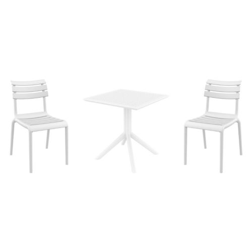 Introducing the Helen chairs and Sky 27" square table 3 piece dining set in White - the perfect addition to any small outdoor living area! Crafted from high-quality polypropylene resin, this set is durable and weather-resistant, ensuring it will last you for years to come. Helen chairs feature a sleek and modern design, with a comfortable seat and backrest. Sky 27" square table providing ample space for two people to enjoy a meal or drink together.